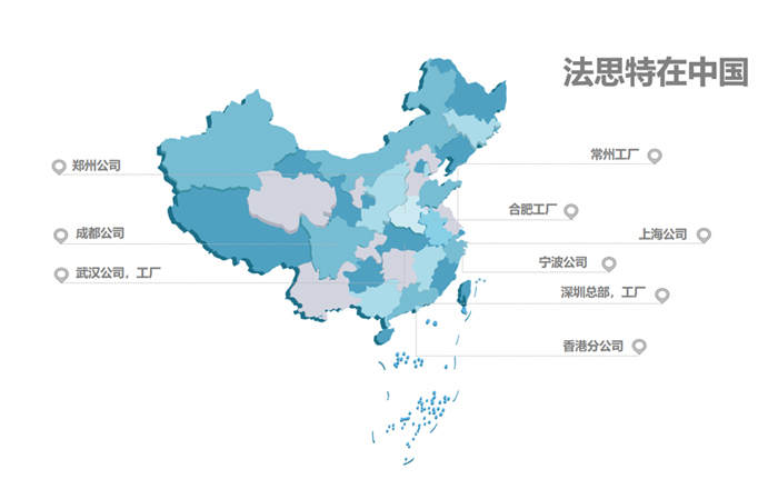 為更好服務(wù)我們的客戶(hù),目前法思特在新加坡,中國(guó)香港,珠三角、長(zhǎng)三角以及中國(guó)中部都設(shè)立了工廠(chǎng)或公司。
